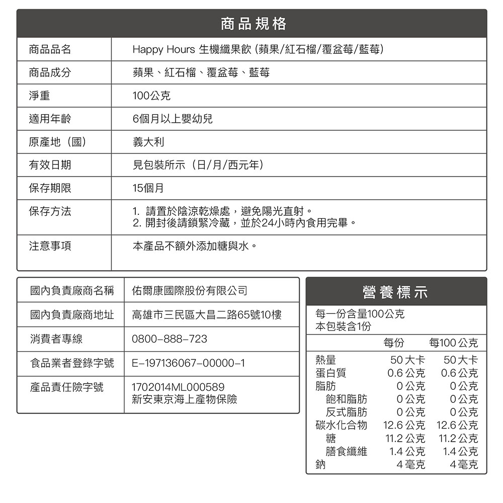 ▪ 注意事項: 本產品不額外添加糖與水。
