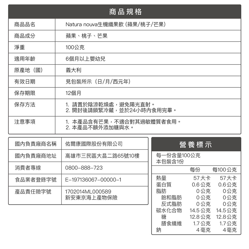 2. 本產品不額外添加糖與水。