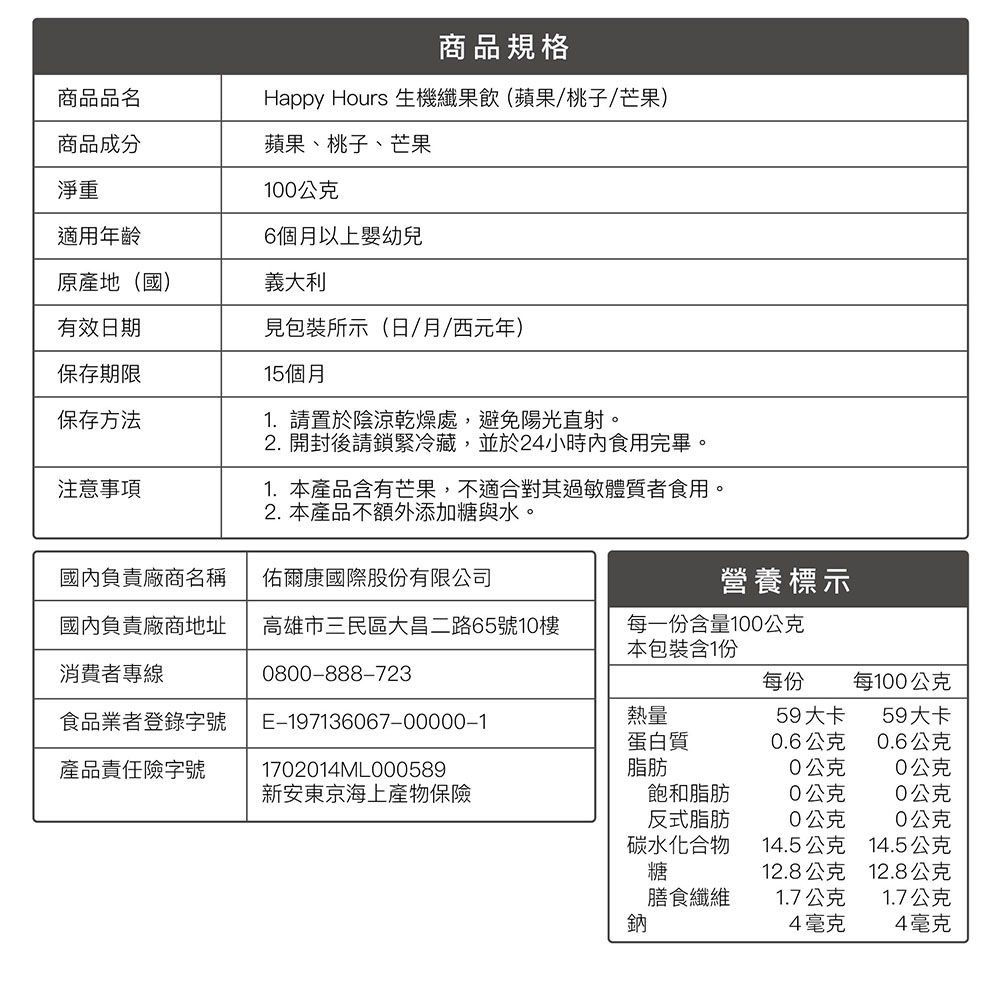 ➪ Happy Hours生機纖果飲 ~ 每一包提供1/2~1/3每日所需水果