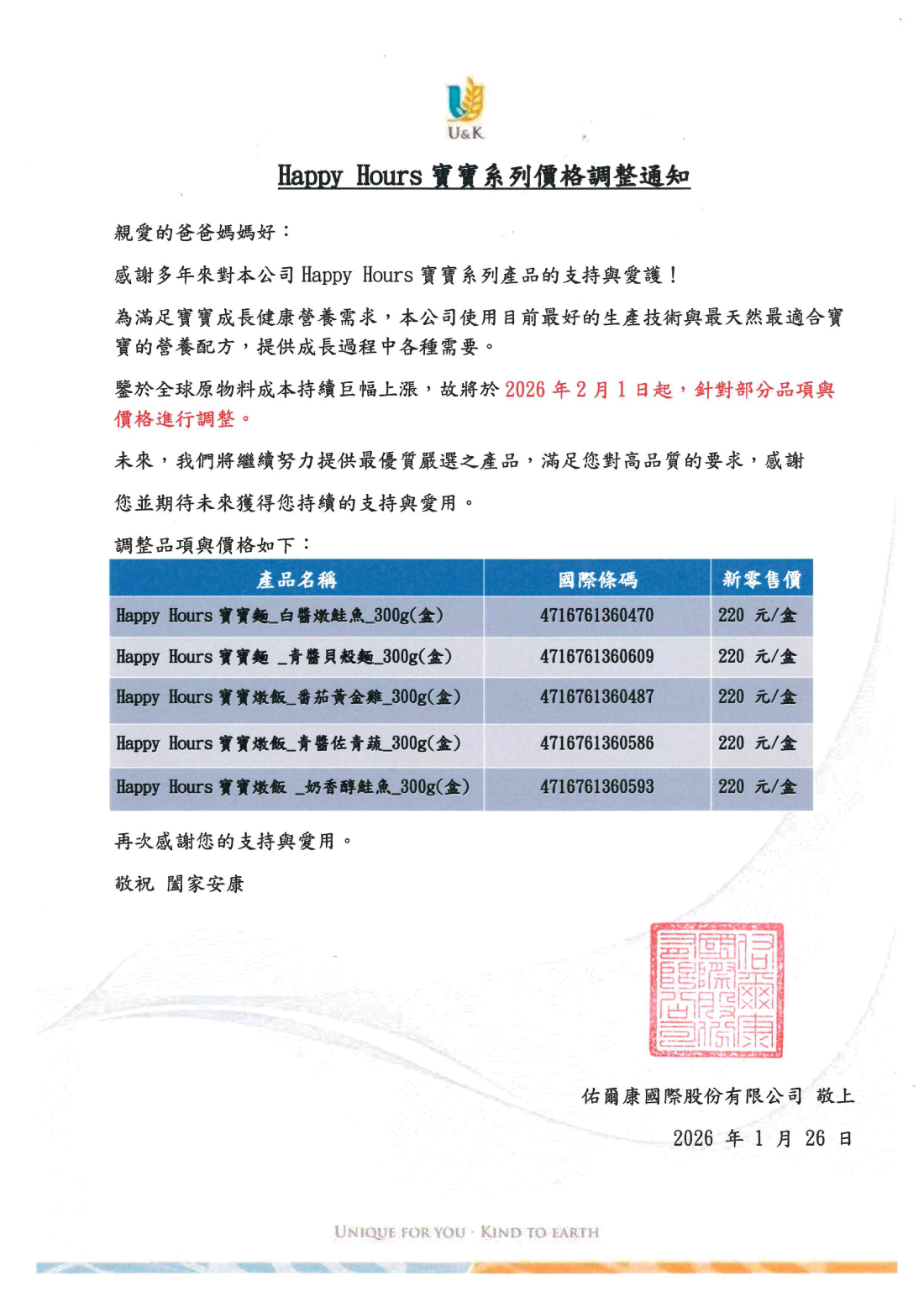 Happy Hours寶寶系列價格調整公告