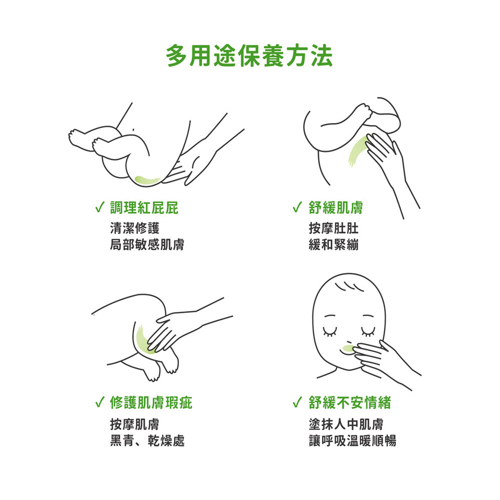 ‧可按摩於肚肚肌膚安撫寶寶不安情緒。