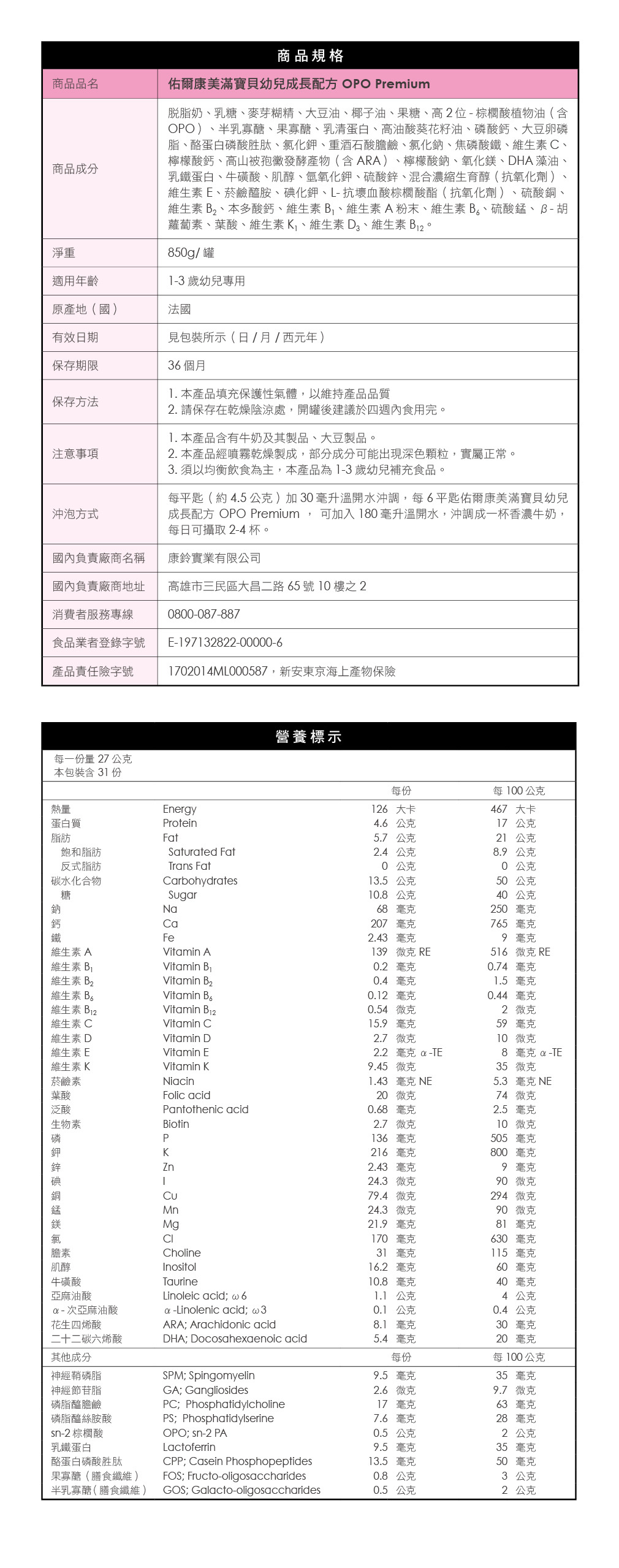 佑爾康金貝親 幼兒成長配方 OPO Premium 850g/罐
