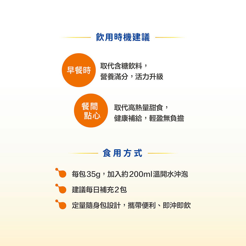‧沖泡方式:每包可加入200毫升溫開水,沖調成一杯營養補充品。