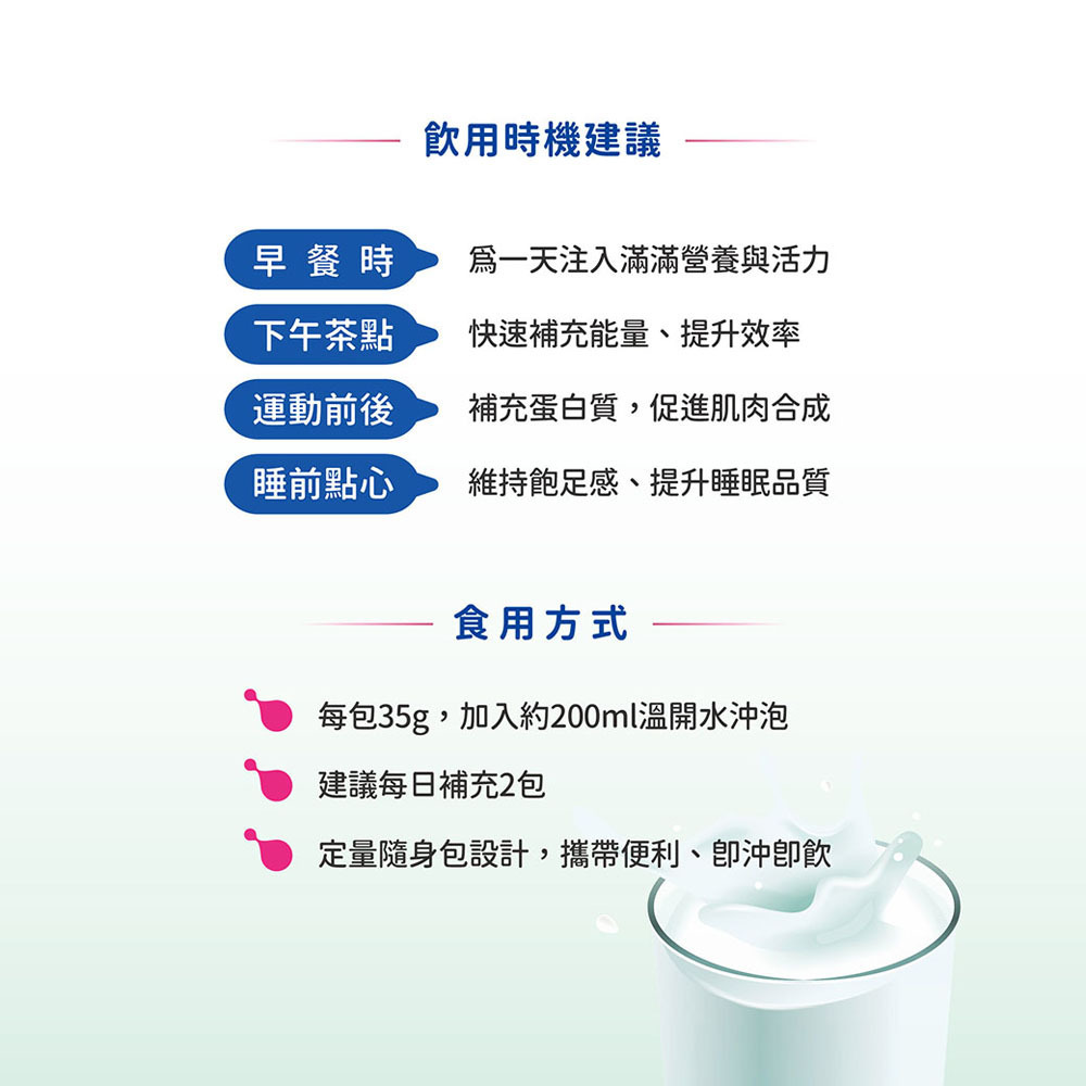 均衡三大營養素配方,高蛋白、輕脂、適醣設計,補足關鍵時期所需營養