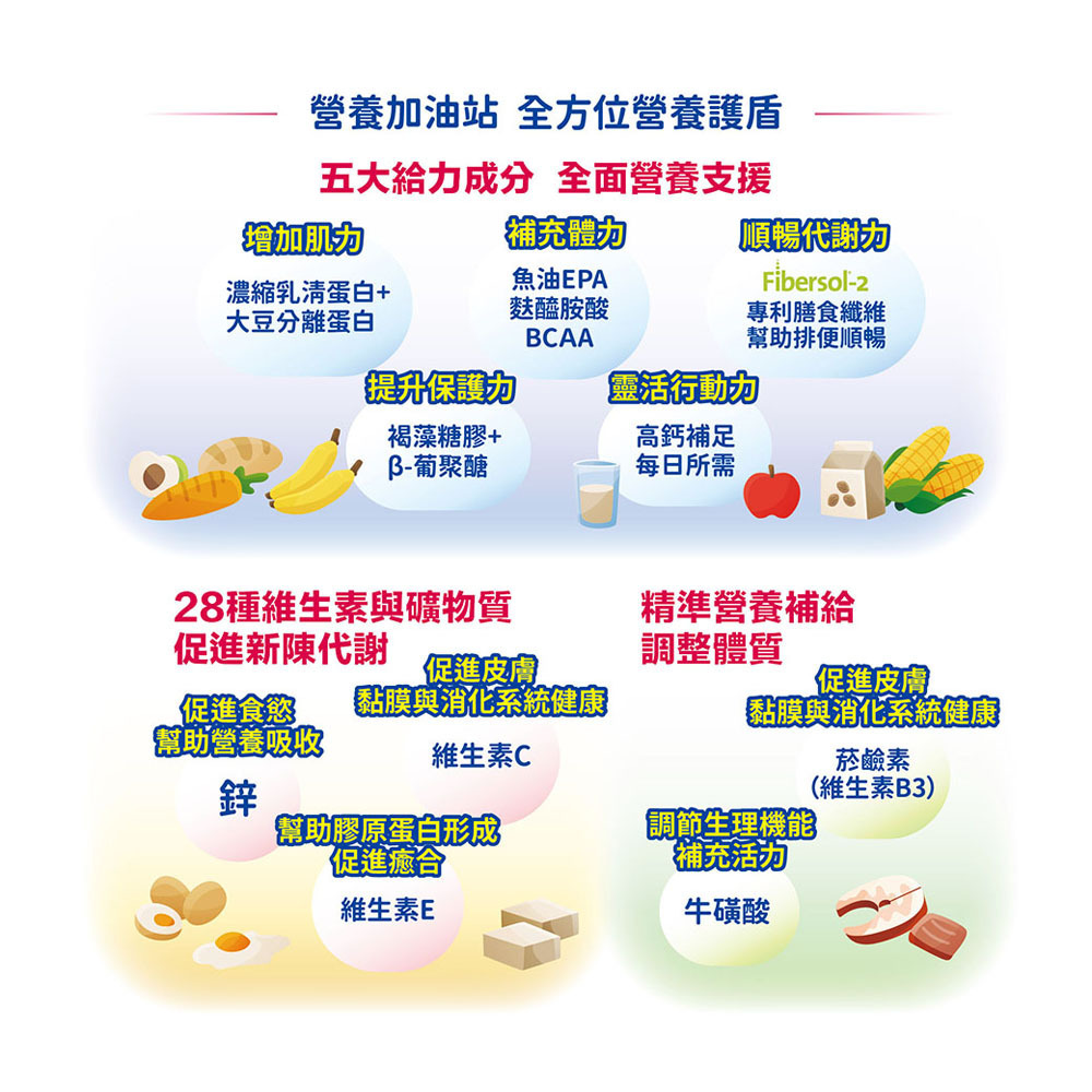 熱量濃縮、採用優質蛋白質及深海魚油EPA,打造堅實營養基底。