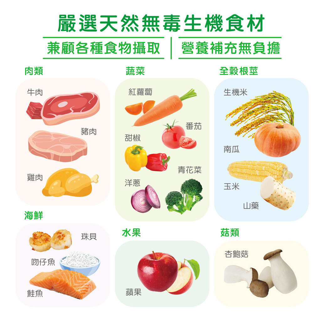 ✓ 食材選擇-選用豐富多樣且天然新鮮的食材,增加家中寶貝開發味蕾的感官能力。