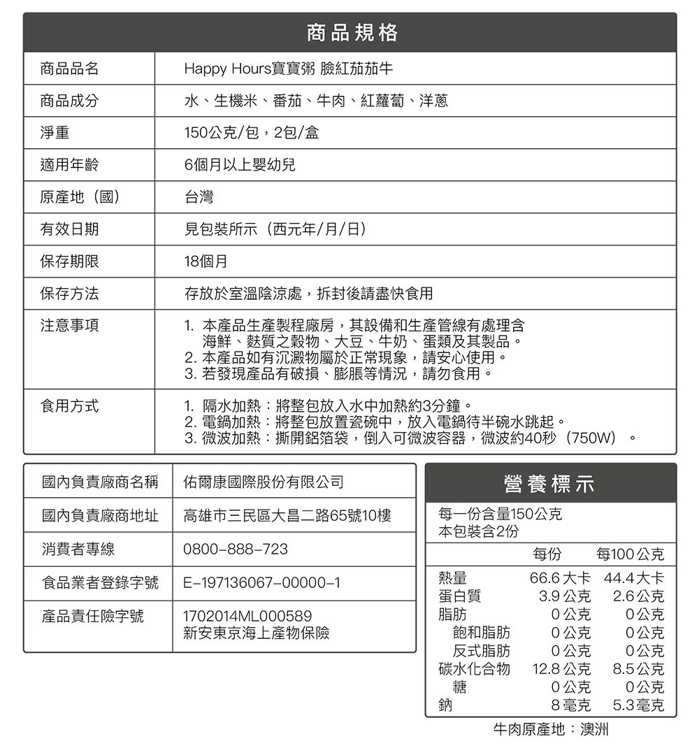 大地之愛 Happy Hours 寶寶粥 臉紅茄茄牛 300g/盒