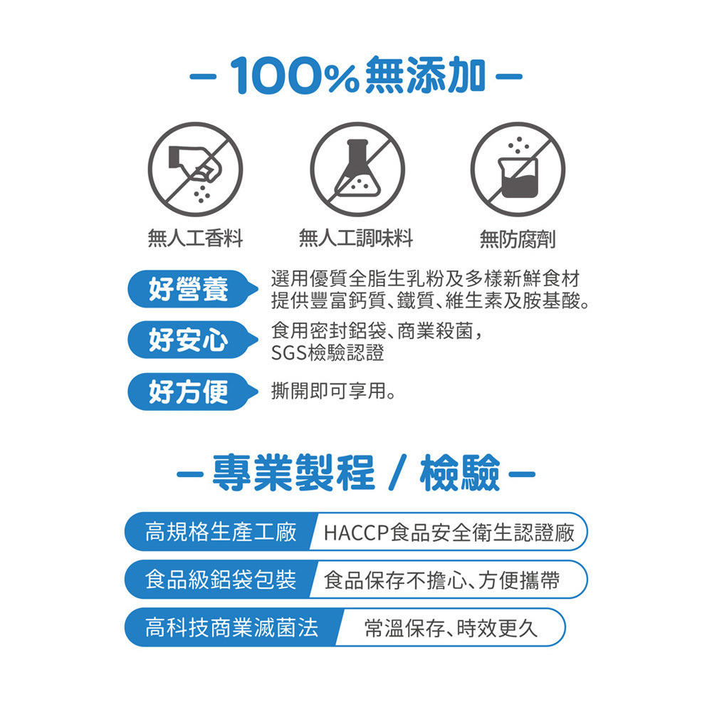 ✓ 高科技商業滅菌法→常溫保存、時效更久