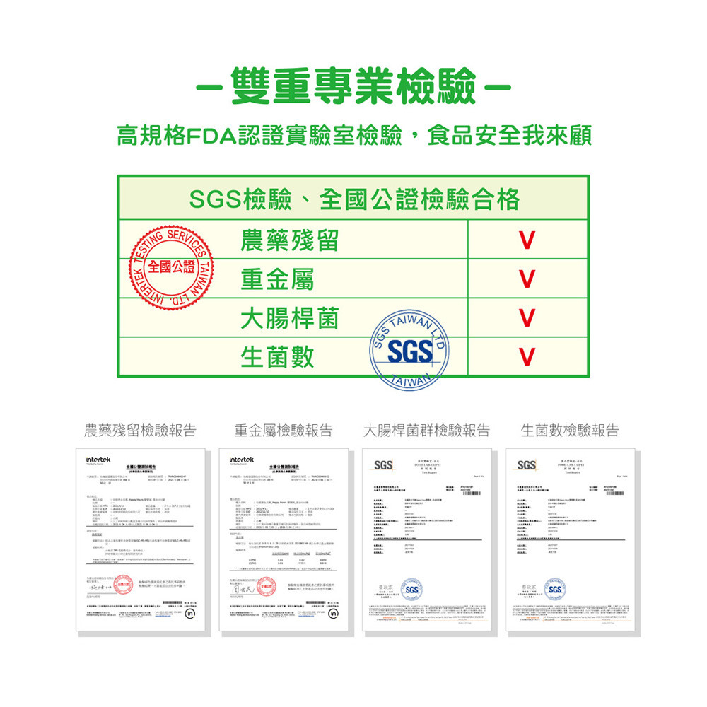 ✓ 雙重專業檢驗→高規格FDA認證實驗室檢驗,食品安全我來顧