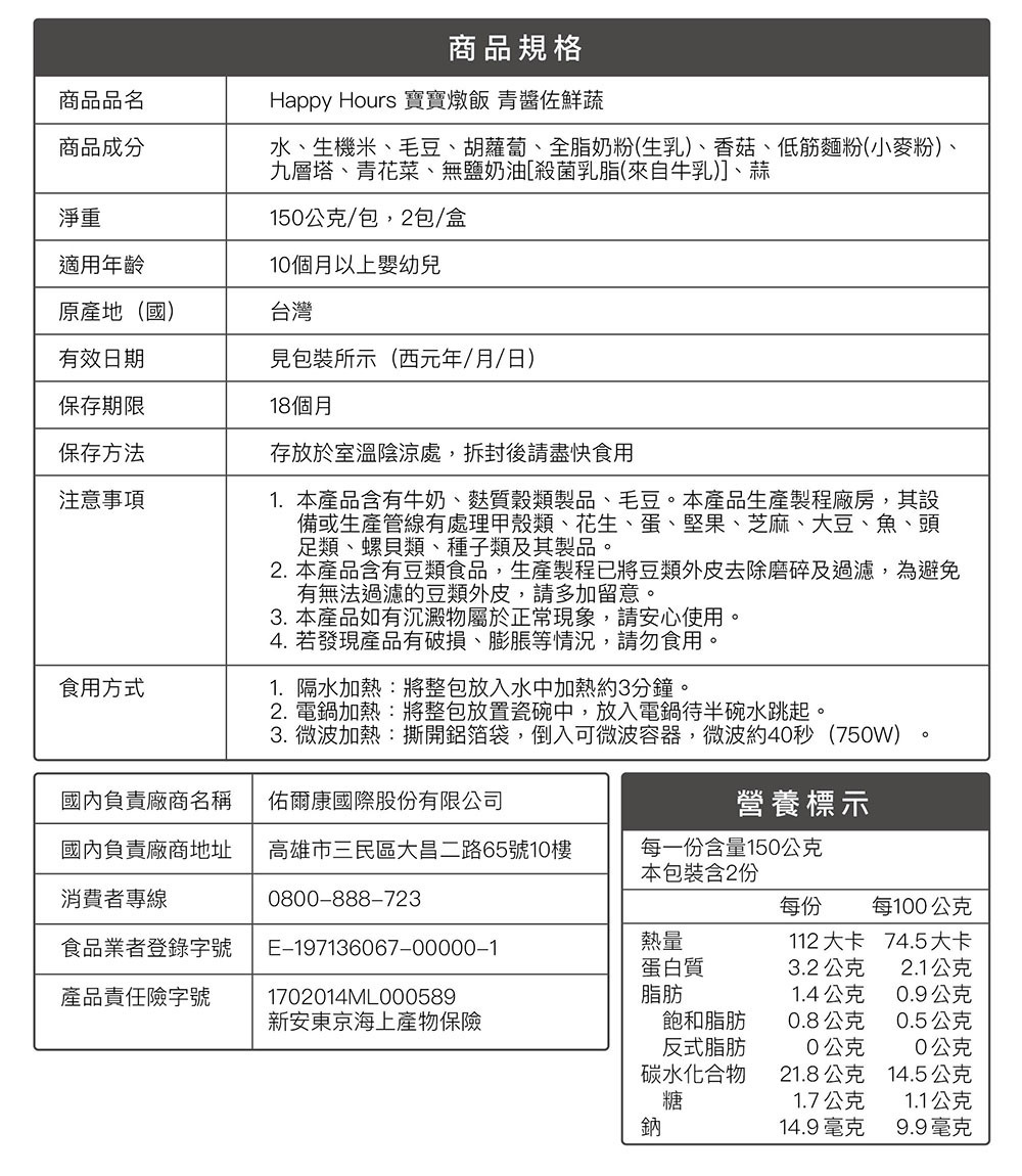 ✓ 發展營養-營養師調配符合現階段寶貝成長需求的黃金配方,兼具全榖根莖、蛋豆魚肉及蔬菜類等,幫助寶貝頭好壯壯、健康長大。