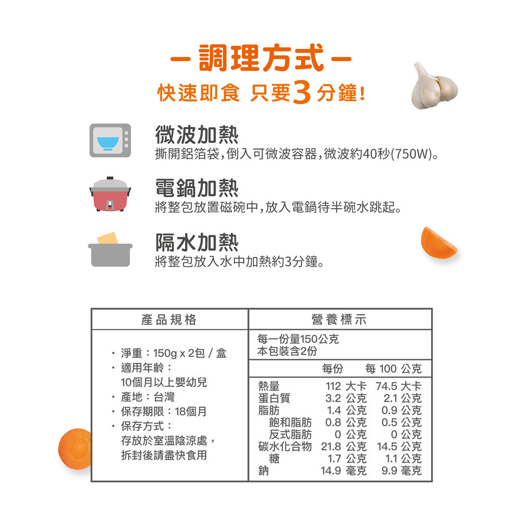 ✓ 快速即食-隔水加熱只要三分鐘!