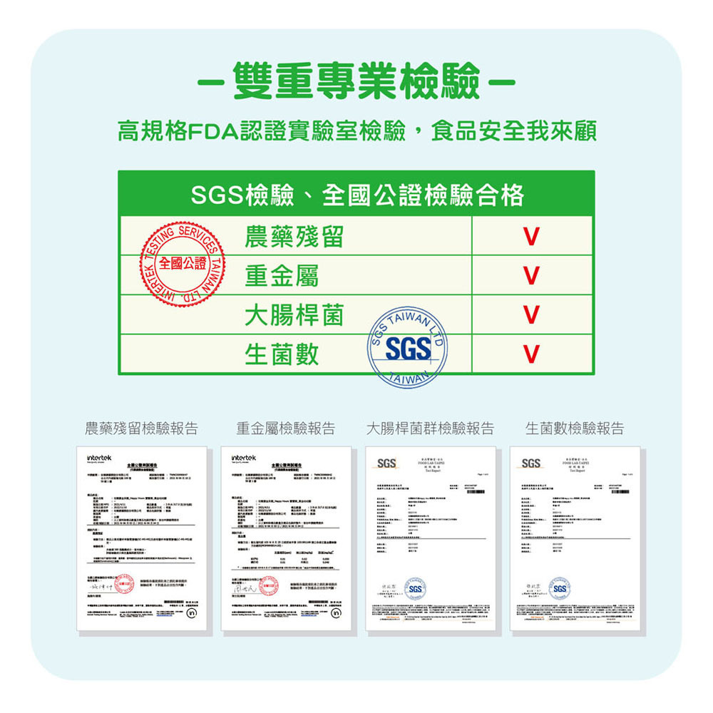 ✓ 雙重專業檢驗→高規格FDA認證實驗室檢驗,食品安全我來顧