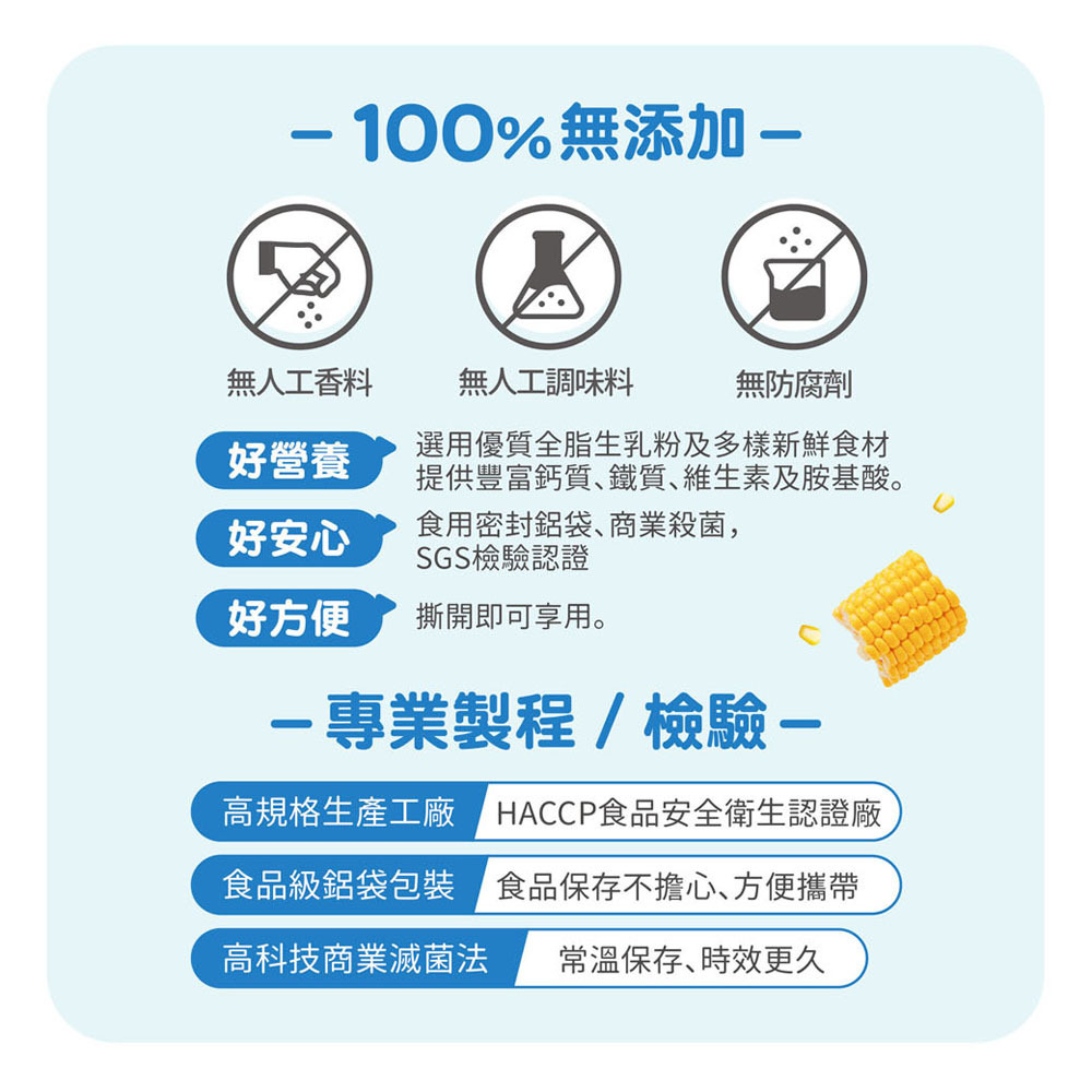 ✓ 高科技商業滅菌法→常溫保存、時效更久