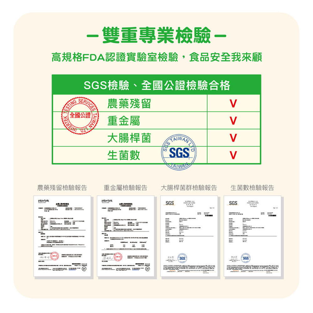 ✓ 雙重專業檢驗→高規格FDA認證實驗室檢驗,食品安全我來顧