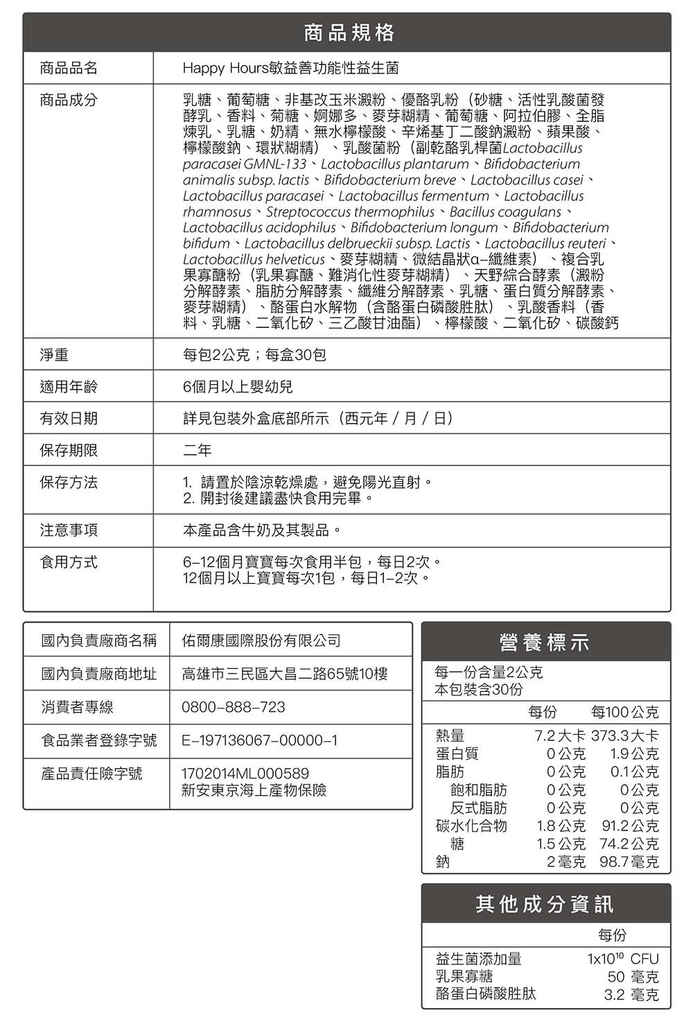 大地之愛 Happy Hours 敏益善功能性益生菌 30包/盒