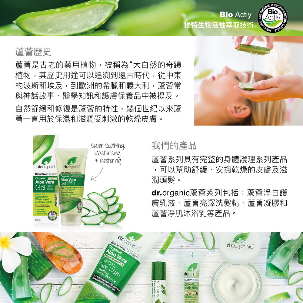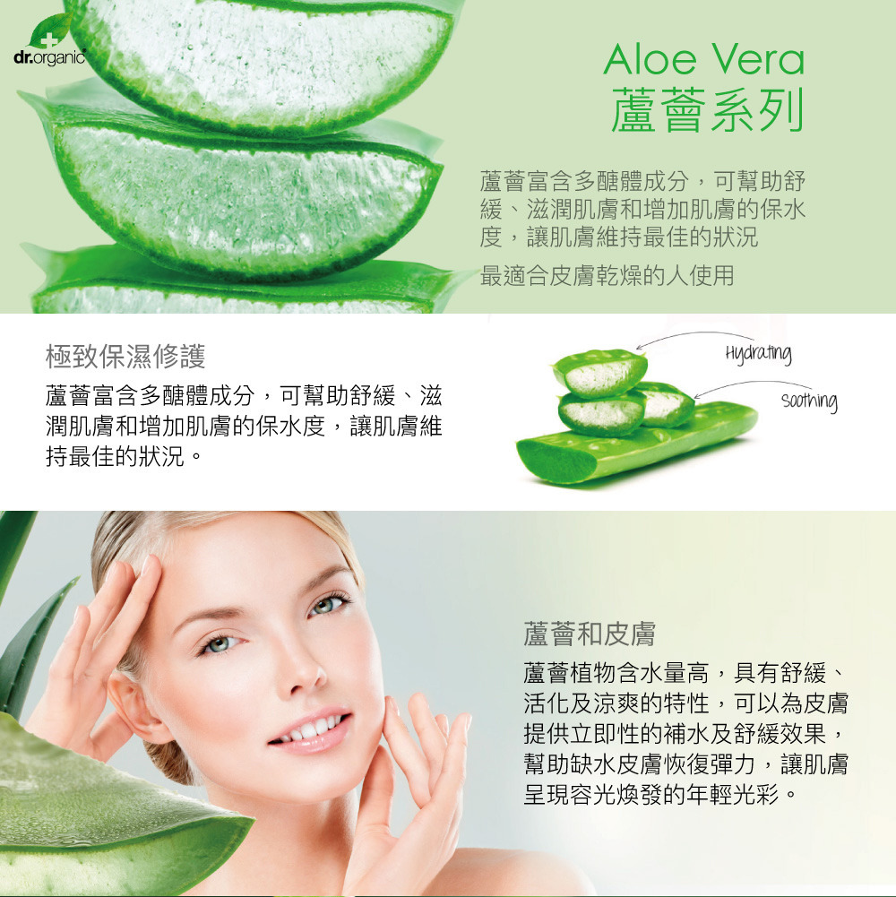 ‧蘆薈富含多醣體成分,含水量高,可幫助舒緩、滋潤肌膚和增加肌膚的保水度,讓肌膚維持最佳的狀況。