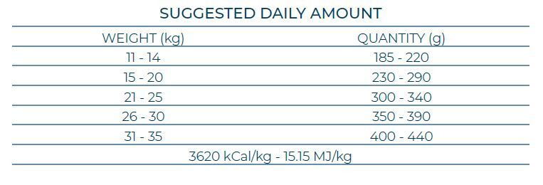 粗蛋白 24%、粗脂肪 11%、粗纖維 2.7%、粗灰分 7.1%、Omega-3+Omega-6 2.8%。