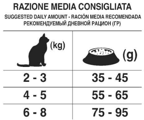 魚粉、玉米、米粉、玉米麩、甜菜纖維、雞脂、米糠、魚油、乾燥角豆粉、礦物質、甘露寡糖(MOS)、果寡糖(FOS)、絲蘭。