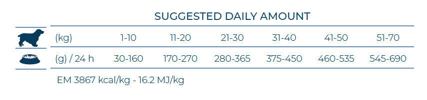 白米、魚 、玉米蛋白、魚油 、米粉、(AFS: 馬鈴薯蛋白、礦物質、魚水解蛋白、硫酸軟骨素(來自魚軟骨)、植物葡萄糖胺、綠唇貽貝、幾丁聚醣、鯷魚油)、啤酒酵母、水解動物蛋白、鯷魚油、馬鈴薯蛋白、甘露寡糖(MOS)、果寡糖(FOS)、絲蘭。