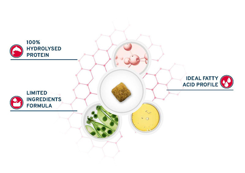 豌豆澱粉、魚水解蛋白、甜菜泥、玉米胚芽油、鮭魚油、植物纖維、礦物質、褐藻乾、甘露寡糖(MOS)、果寡糖(FOS)、絲蘭。