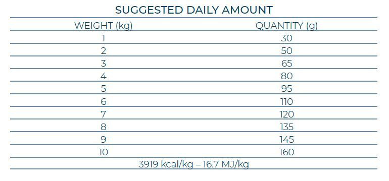 鯷魚、馬鈴薯、馬鈴薯澱粉、馬鈴薯蛋白、魚油、豌豆、礦物質、魚水解蛋白、藻類、甘露寡糖(MOS)、果寡糖(FOS)、絲蘭。